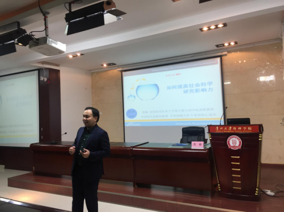 熊教授以“如何提高社会科学研究影响力”为主题,告知师生应如何发表高水平的论文,国际权威杂志为什么权威是因为其发表展示的论文有影响,如何让论文有影响力,熊教授认为其应具有两个特点:一是要有意思,二是很重要。有意思的文章要从标题做起,要做到有意思就是要使人预想不到,与我们平常认识的世界有所不同。写论文要像写故事一样娓娓道来才能吸引读者的眼球,一定要做自己感兴趣的方向这是很重要的。报告中,熊教授指出英国的创新政策是值得我们中国学习的,创新带动了社会发展,而中国欠缺的恰恰是创新。中国的高校应为学生、教师创造宽松的环境、统一学术标准、加强学术的流动性这样才能迸发出创新的火花。熊教授的渊博的知识、有理有据的论证、切实得当的案例分析、谦逊的学者作风赢得现场师生的阵阵掌声。