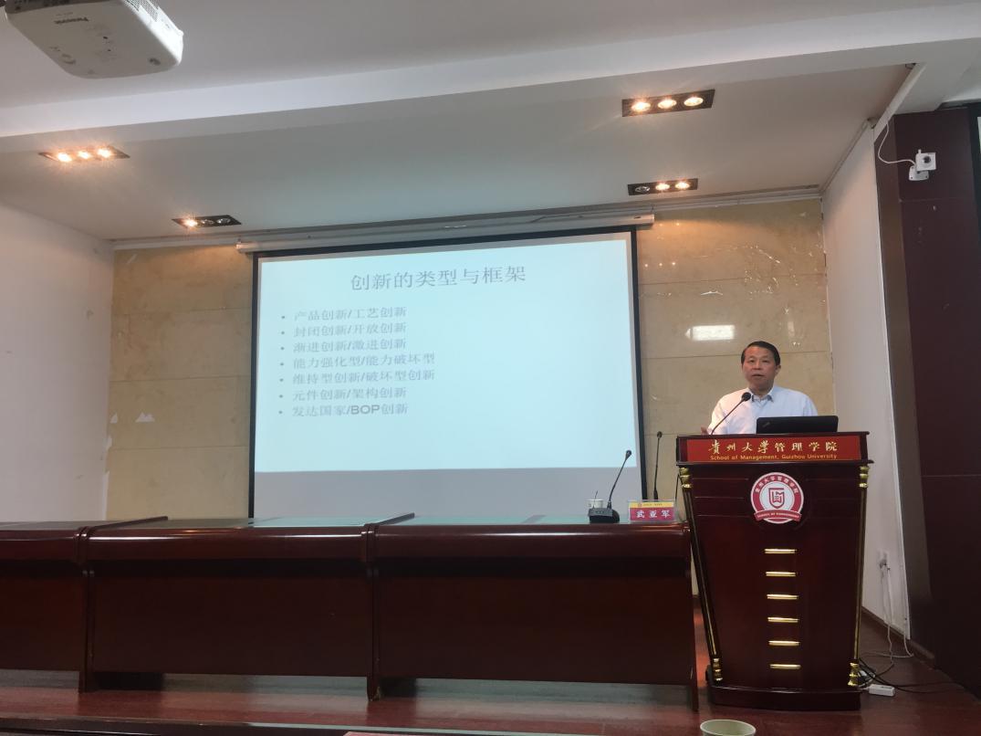 2017年4月24日下午3:30,贵州大学2017年第20期文科讲坛在管理学院302报告厅开讲。北京大学光华管理学院组织与战略管理系副教授,博士生导师,北京大学光华管理学院华人企业管理研究中心副主任武亚军副教授受邀担任主讲嘉宾。报告会由管理学院院长李烨主持,学校和学院师生共同聆听了武教授的精彩报告。