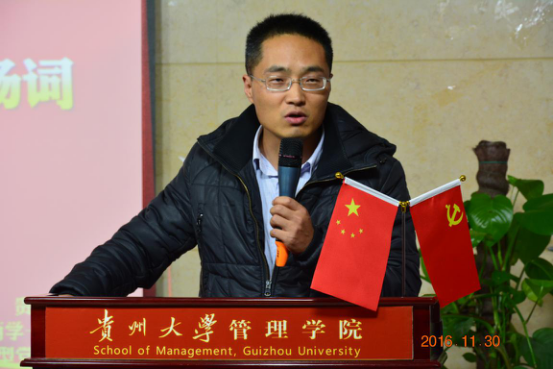 2016年11月30日下午14:30,由贵州大学党委研究生工作部主办,管理学院、机械工程学院、生命科学学院共同承办的“两学一做我先行”系列活动之“党员人人上党课”微型党课评选决赛在管理学院302报告厅举行。管理学院陶玉顺书记,校党委组织部、党校常务副校长李昕昌副部长,校党委研究生工作部张小彬副部长,机械工程学院党委代祥社副书记、生命科学学院党委令狐莹副书记、管理学院党委张亚军副书记等领导及通联站、艺术团和各学院研究生代表出席此次比赛。