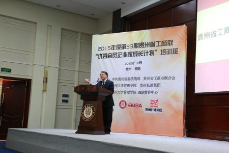 10月31日,2015年度第33期贵州省工商联“优秀会员企业家成长计划”培训在贵州大学一号行政楼报告厅举行。该培训是由中共贵州省委统战部、省工商联主办,乐鱼(中国)、贵州长通公司承办,贵州大学EMBA教育中心协办的一项长期企业家系统培训课程。该计划旨在整合全国一流学府资源,汲取一流学者思想精髓,帮助贵州企业家洞悉经济大势,深度思考企业战略,为贵州“后发赶超”提供智库保障。全省各地州市共计209名企业家代表以及管理学院院长李烨、副院长周莉莉、院企合作办杜娟、王云老师及部分师生参加了当天的培训活动,院长李烨致欢迎辞。