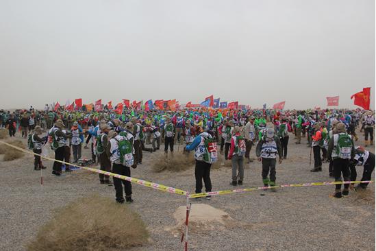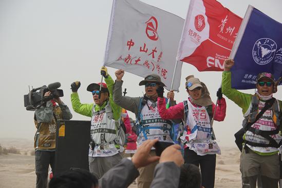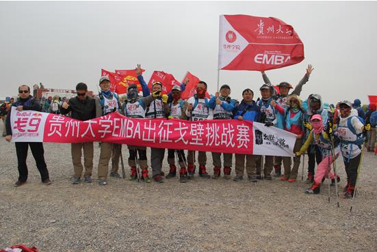 身后,是连续九届参加戈壁挑战赛的兄弟院校的戈友们,我们虽然晚来了,但我们并没有迟到,我们将一起同踏戈壁征途,用脚步丈量心灵的距离,在茫茫戈壁中第一次留下贵大人的身影。
