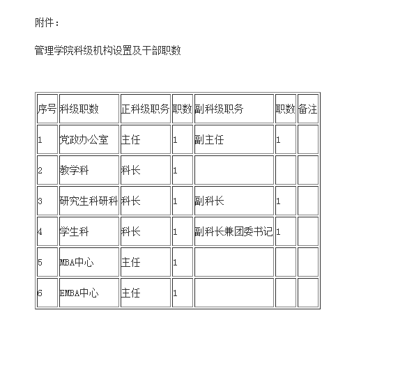 附件:《管理学院科级机构设置及干部职数》