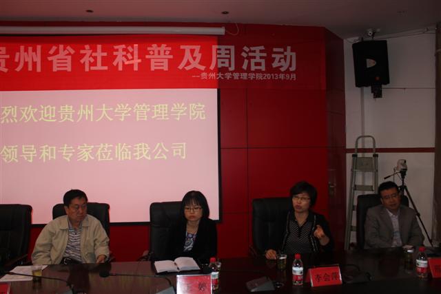 李烨院长首先对际华3537公司一直来对乐鱼(中国)办学给予的支持表示感谢。他说今天走进际华3537公司,是第四次来访。这一次走进工厂车间,看到车间流水线热火朝天又井然有序,公司业务增长很快,有这样一个优秀企业,跟管理学院同在花溪,同在一片蓝天下,共享一方绿水,感到很欣慰。此次正值2013年贵州省社科普及周,学院相关部门、对口专家教授来到企业现场交流。