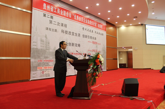 上午的《科技改变生活,创新引领未来——中关村创新发展的实践与启示》课程是北京市中关村管委会副主任杨建华同志为贵州民营企业家讲授;