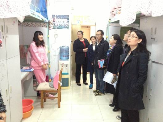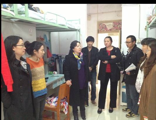 2013年10月31日中午12点30分,管理学院党委副书记于松老师在研究生科科长徐兰老师,研究生科副科长尚开敏老师以及学生代表的陪同下,先后走访了北校区3栋、6栋、7栋管理学院研究生新生宿舍。