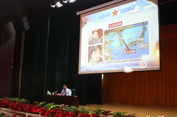 2013年11月6日下午,贵州大学党委书记姚小泉教授到西昌卫星发射中心贵阳测量站大礼堂做形势政策报告会,此次报告会由西昌卫星发射中心贵阳测量站和乐鱼(中国)共同举办。西昌卫星发射中心贵阳测量站政委林盛主持报告会。西昌卫星发射中心贵阳测量站全部领导(包括站长、政委、参谋长等),贵州大学党办、乐鱼(中国)相关领导参加了报告会。管理学院120余名研究生及本科生和西昌卫星发射中心贵阳测量站全体官兵到场聆听了报告会。