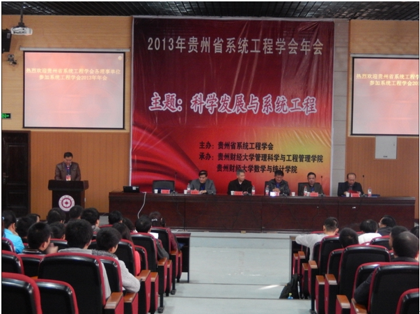 2013年11月23日,由贵州省系统工程学会主办,贵州财经大学管理科学与工程管理学院、数学与统计学院承办的2 013年贵州省系统工程学会年会在贵州财经大学召开,省科学技术协会、省民政厅领导,贵州大学、贵州师范大学、贵州民族大学等省内高校领导及部分师生参加。