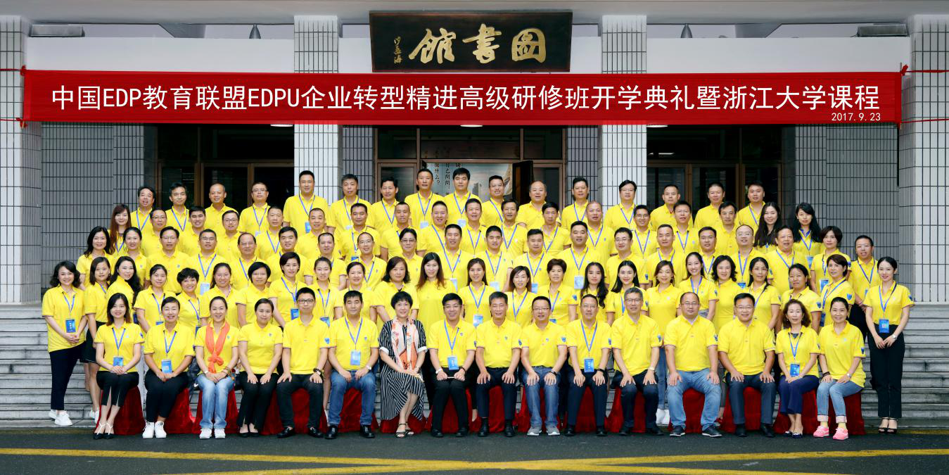 2017年9月23日,由中国EDP教育联盟十所院校发起,旨在整合全国十所著名高校顶尖教育资源,打造全国一流企业学习交流平台的“EDPU企业转型精进高级研修班”在浙江大学西溪校区隆重开学,并展开第一模块学习。