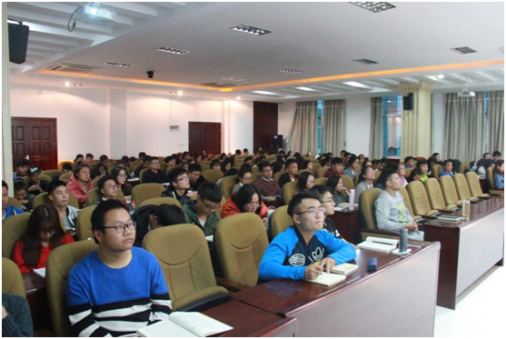 杨未教授最后与同学们分享了习近平总书记在十九大与贵州代表团谈论的贵州新定义,以及把十九大习近平总书记的三段话分享给在座的青年同学,希望广大同学要选择和坚持信仰,争取早日向党组织靠拢。
