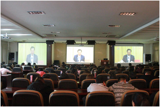 2017年11月6日上午9:00,管理学院党委组织教师、研究生和本科生党员于管理学院三楼报告厅集中观看了中央宣讲团党的十九大精神宣讲报告会,在学院院长李烨教授,院党委副书记张亚军的带领下,党员同志们更加深入地学习了党的十九大精神,掀起了全院上下学习十九大精神的热潮。