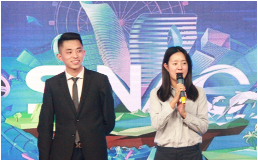 宣讲会第三项是由融创中国优秀创想家传奇代表陈杰和胡馨丹与在座高校同学进行的“师兄师姐说”。首先优秀创想家陈杰和胡馨丹进行了自我介绍,然后与在座同学分享了自己的工作经历和工作感受,最后回答了主持人代表同学们提出的三个问题。