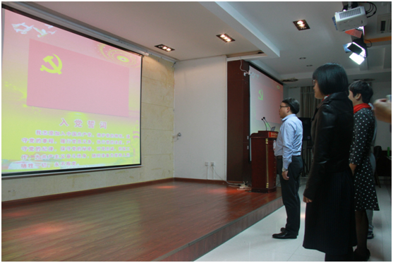 首先,学院院长李烨教授结合学习十九大报告的精神从学院学科建设发展、师资队伍建设、人才引进等方面与广大党员师生分享自己的学习体会,号召全院广大党员师生不忘初心、牢记使命,努力投身到学院的各项工作中来,李院长带领党员师生重温入党誓词,宣誓声铿锵有力,响彻现场。