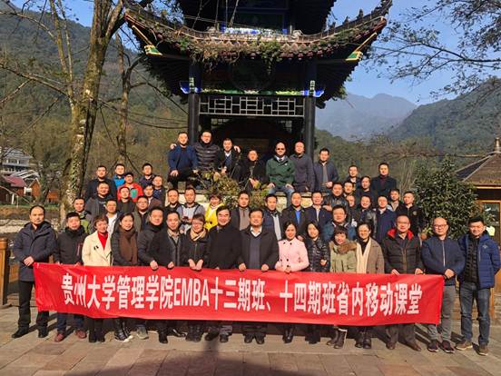 2017年12月7日,贵州大学EMBA十三期、十四期省内移动课堂在铜仁市江口县,美丽的梵净山脚下顺利开展,并于12月9日按照教学计划圆满结束。