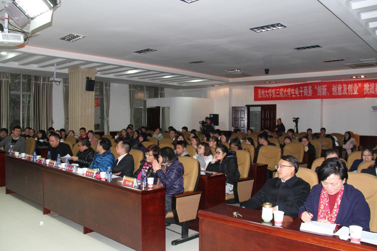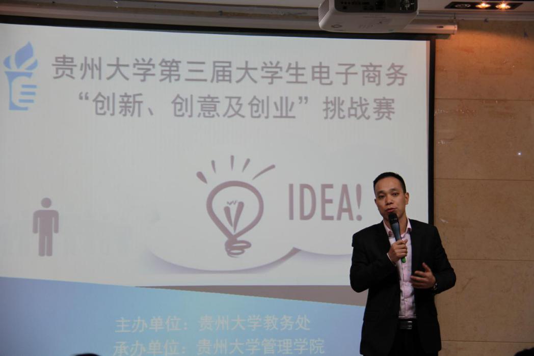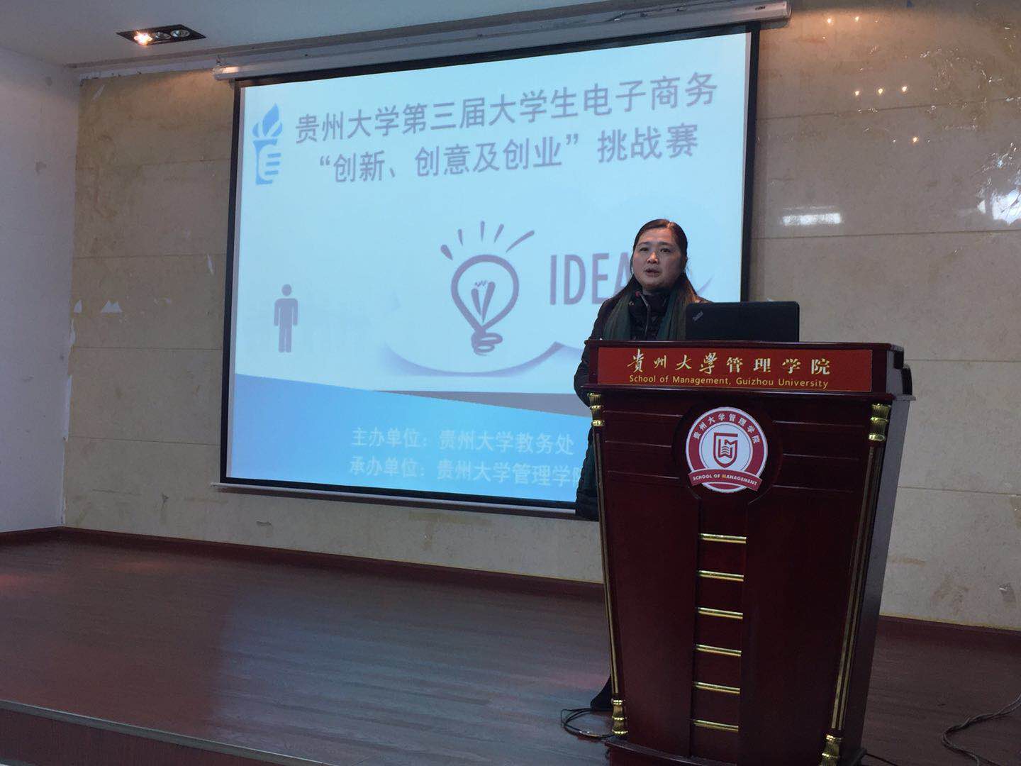为激发当代大学生自主创业的热情,培养和提升大学生创新意识、创业精神和能力,促进实现以创业带动就业,以实践深化理论的培育目标。由贵州大学教务处主办,乐鱼(中国)承办的贵州大学第三届大学生电子商务“创新、创意及创业”挑战赛,于2017年12月15日13:30在管理学院三楼报告厅顺利举行。