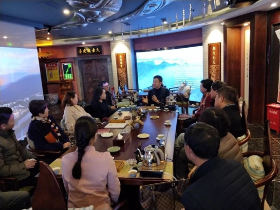 董事长陶晓旭先生详细的向来宾介绍了贵州茶发展实际情况,天下第一壶中华茶文化博览园及天壶国际大酒店发展意义,以及中华茶道馆如何为贵州茶注文化、讲故事、树品牌、长翅膀,就茶产业、茶文化对湄潭农居生活、大学生就业选择意义等作分享。双方开展更深层次的合作,密切校企关系,合作共赢。
