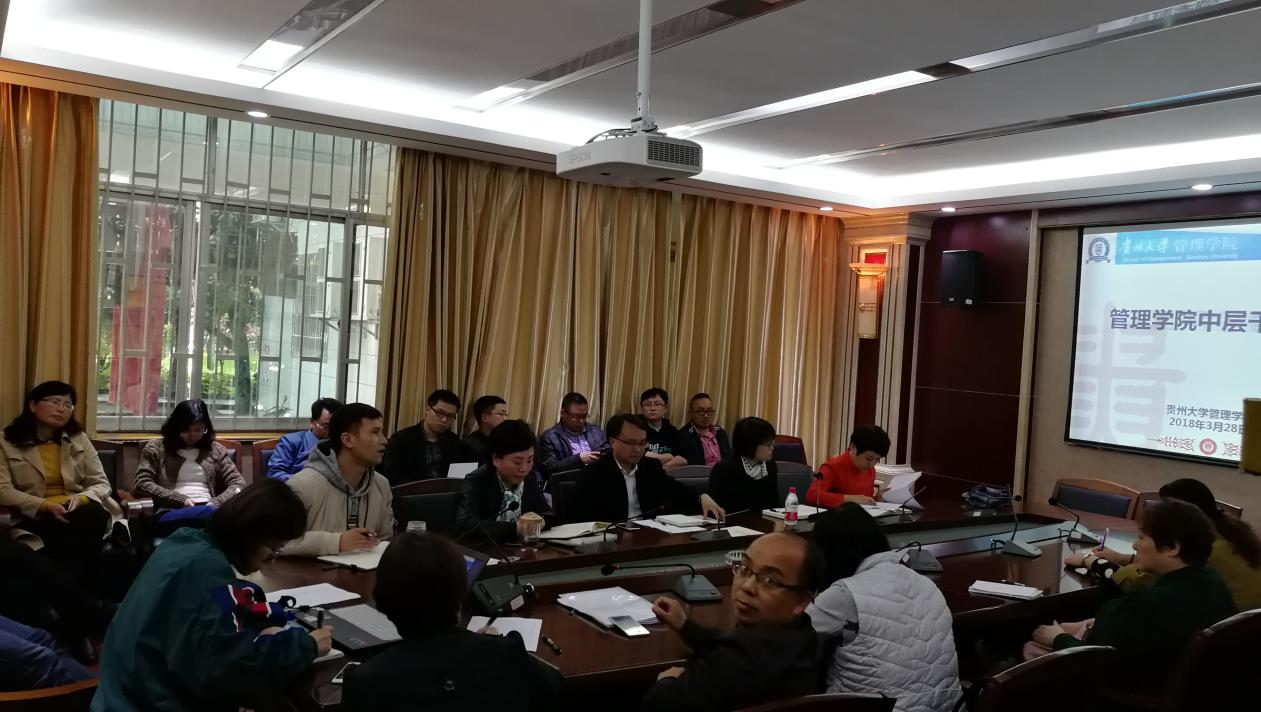 2018年3月28日下午16:00,管理学院在致远楼一楼案例室1召开学院中层干部会议。学院领导、党政办公室成员、学院各科室负责人、各系主任及各党支部书记参加会议,会议由学院院长李烨教授主持。