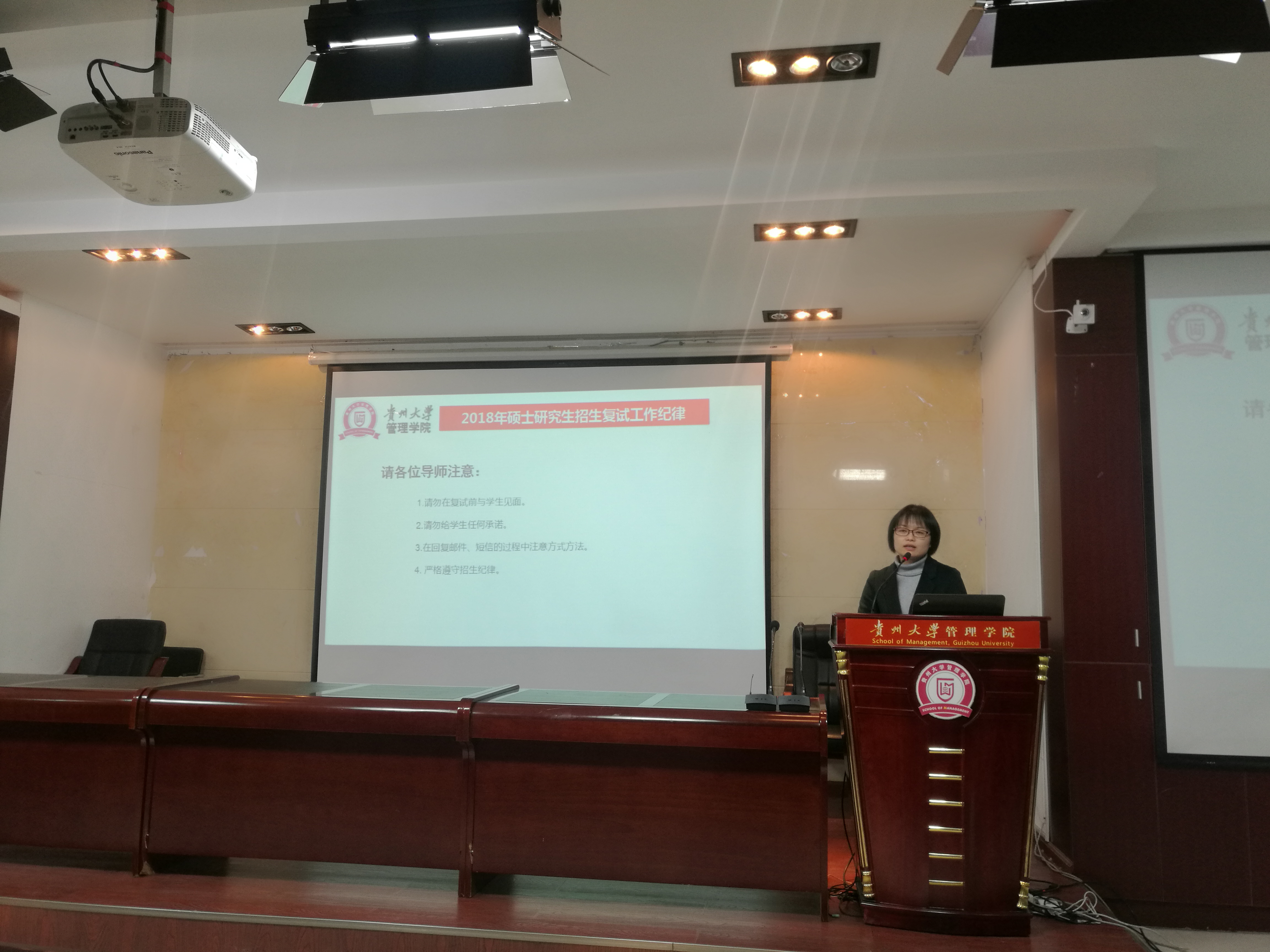 党委副书记张亚军代表学院纪委对所有导师做出要求,不允许导师与学生以任何理由、任何方式见面,不允许导师接受学生任何形式的宴请、礼品以及出入娱乐场所,研究生招生复试工作社会关注度高,学生及家长维权意识强,请各位导师严格遵守招生复试纪律。