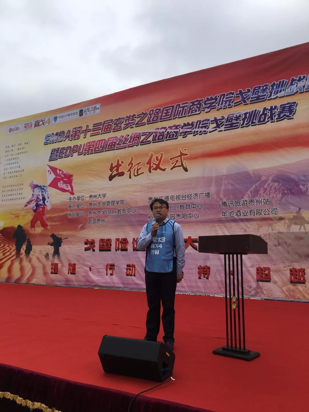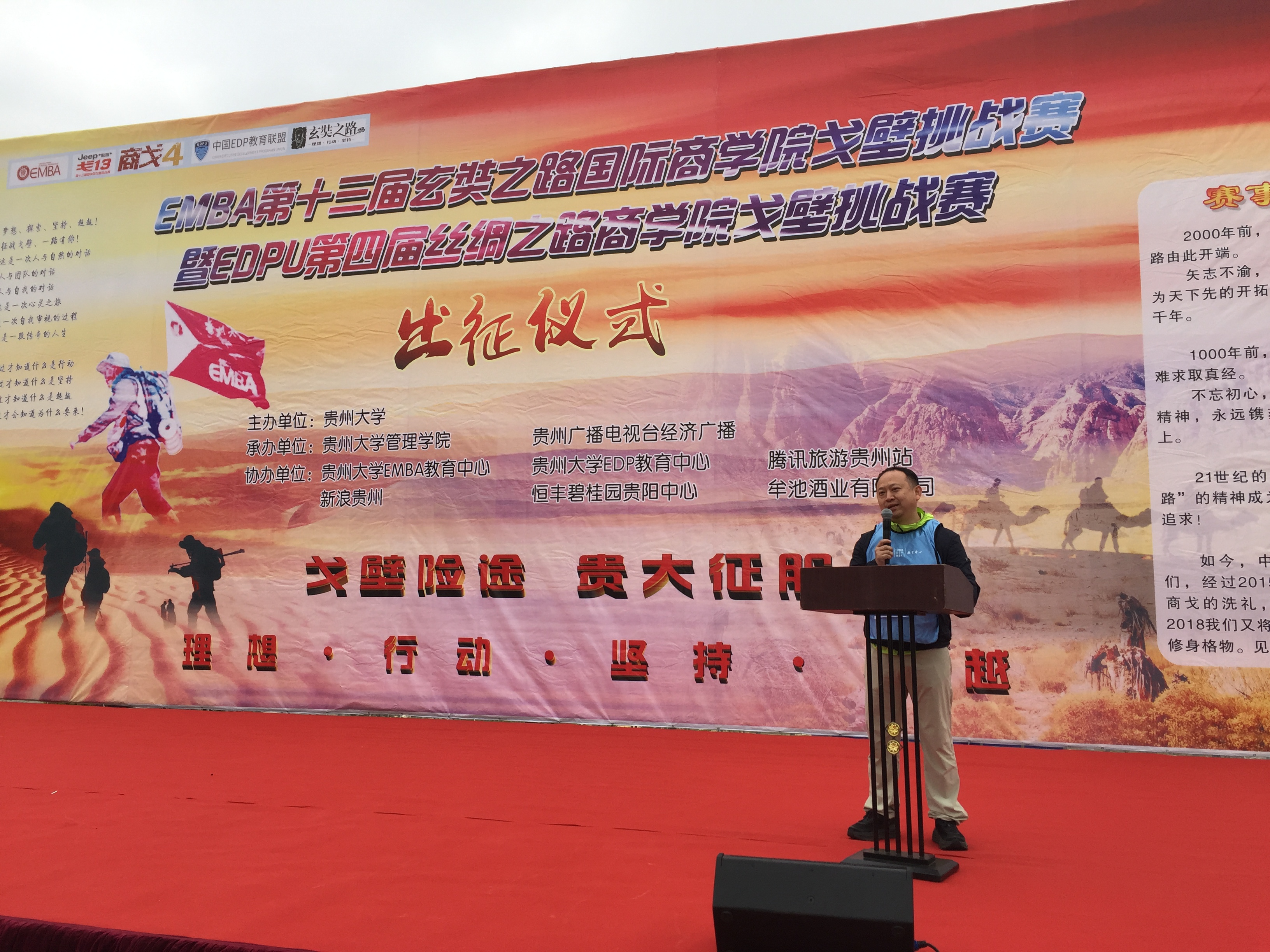 4月15日上午9时,由贵州大学主办,乐鱼(中国)、贵州广播电视台经济广播共同承办的“EMBA第十三届玄奘之路商学院戈壁挑战赛、EDP第四届商学院丝绸之路戈壁挑战赛和MBA第七届亚太地区商学院沙漠挑战赛”出征仪式在贵州大学西校区隆重举行。乐鱼(中国)院长李烨、副院长王婷、周莉莉、宋山梅、党委副书记张亚军、管理学院院长助理、EMBA、EDP中心主任张勇、贵州大学EMBA、MBA、EDP学员代表,以及新老戈友等100多人共同参与了此次出征仪式。