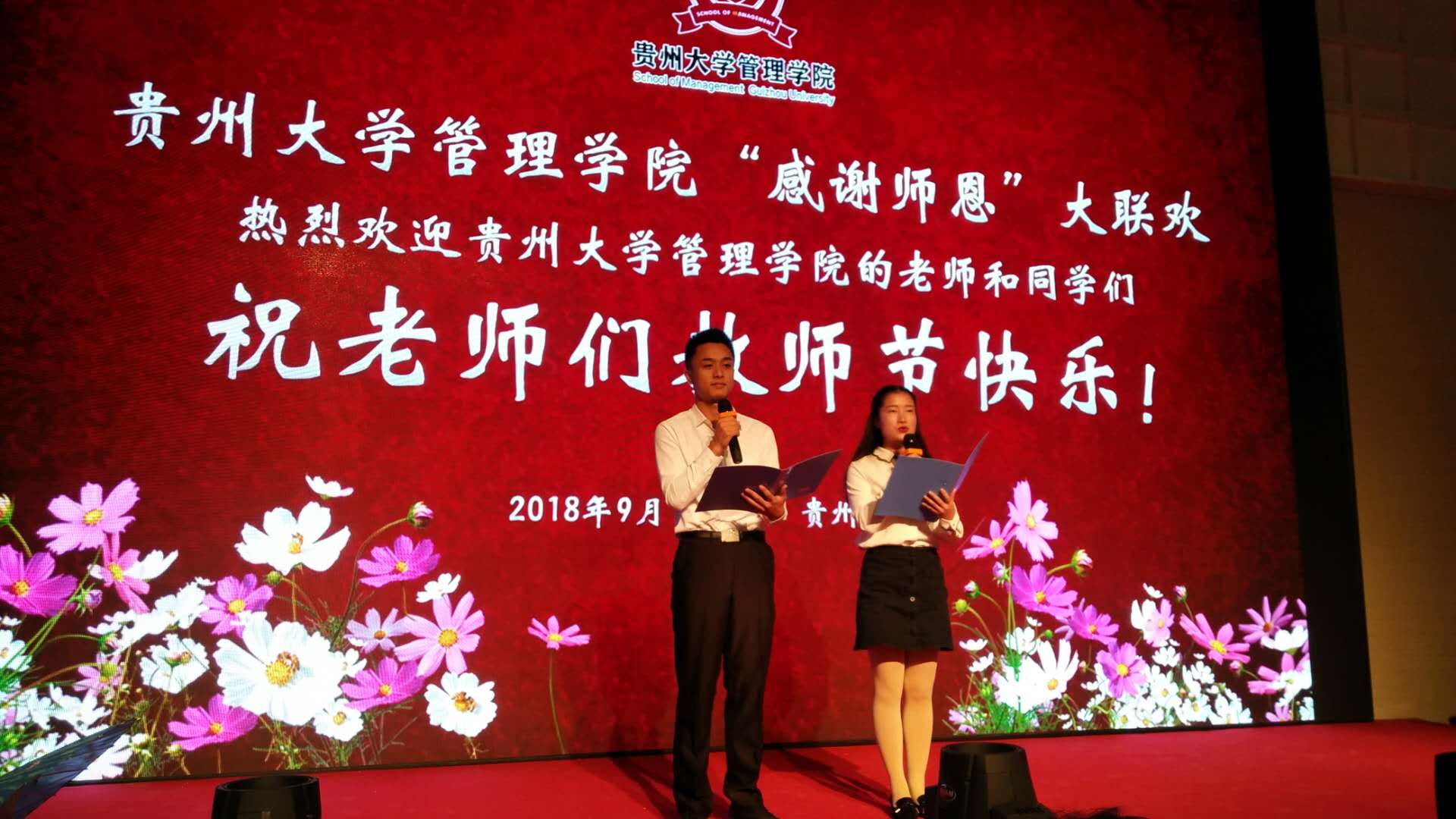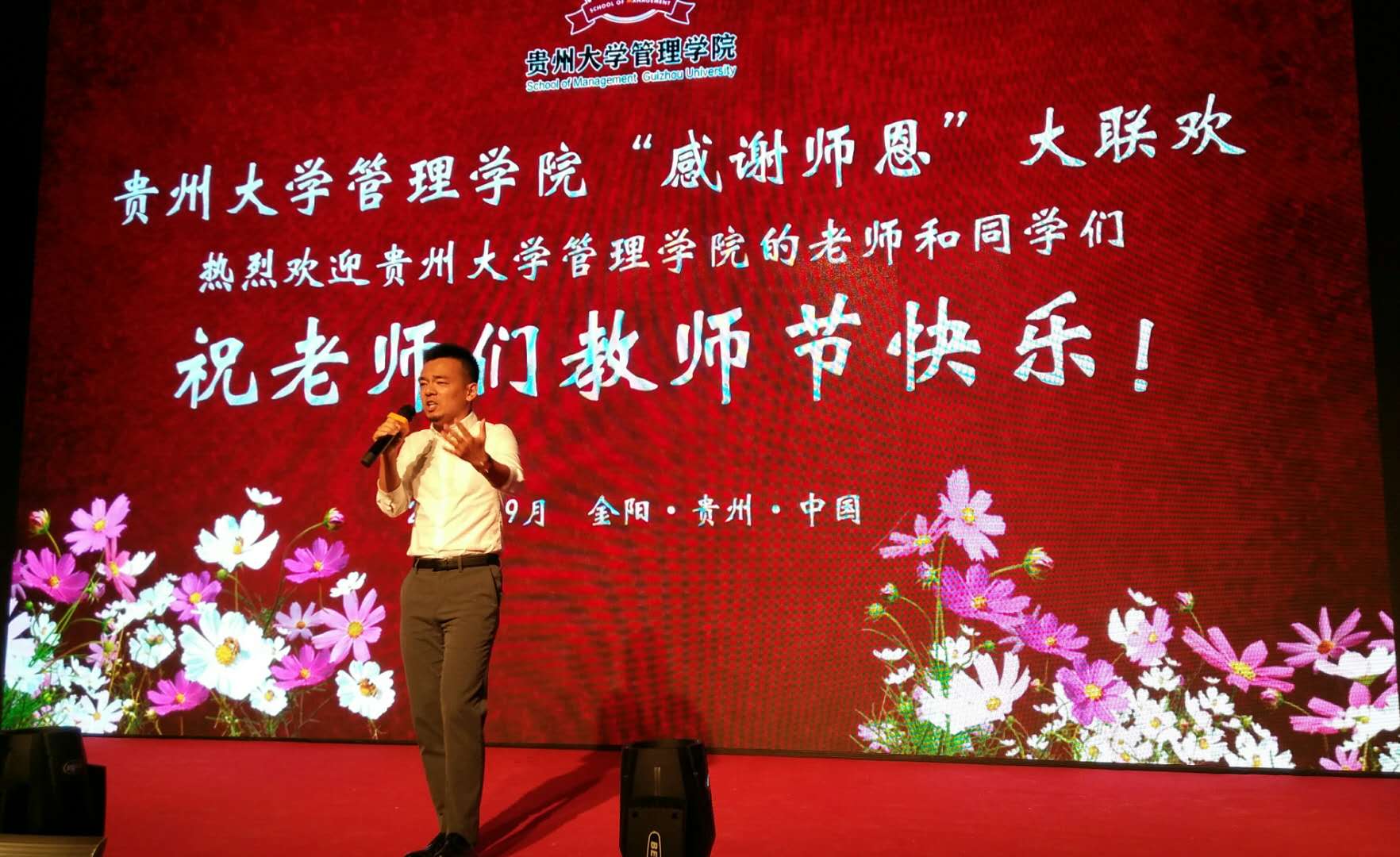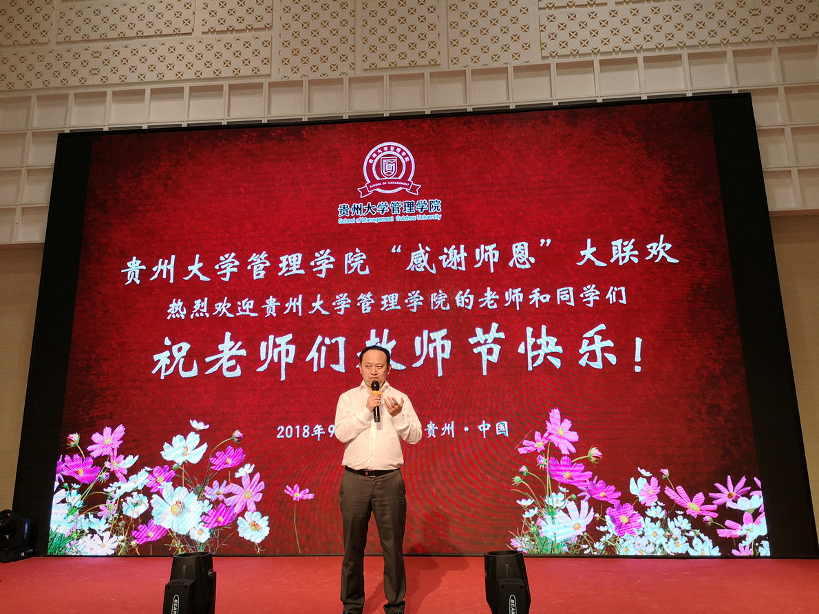 9月10日下午,乐鱼(中国)校友会大型活动“感谢师恩”大联欢在金阳国窖1573举办,本次活动由乐鱼(中国)主办,贵州大学校友总会管理学院分会承办,同时贵州国际酒类博览会股份有限公司与牟池酒业赞助支持。时值教师节,贵州大学管理学院院长李烨、副院长王婷、周莉莉、宋山梅,院党委副书记张亚军等200余名师生欢聚一堂,在歌声舞语之中,共同庆祝教师节。