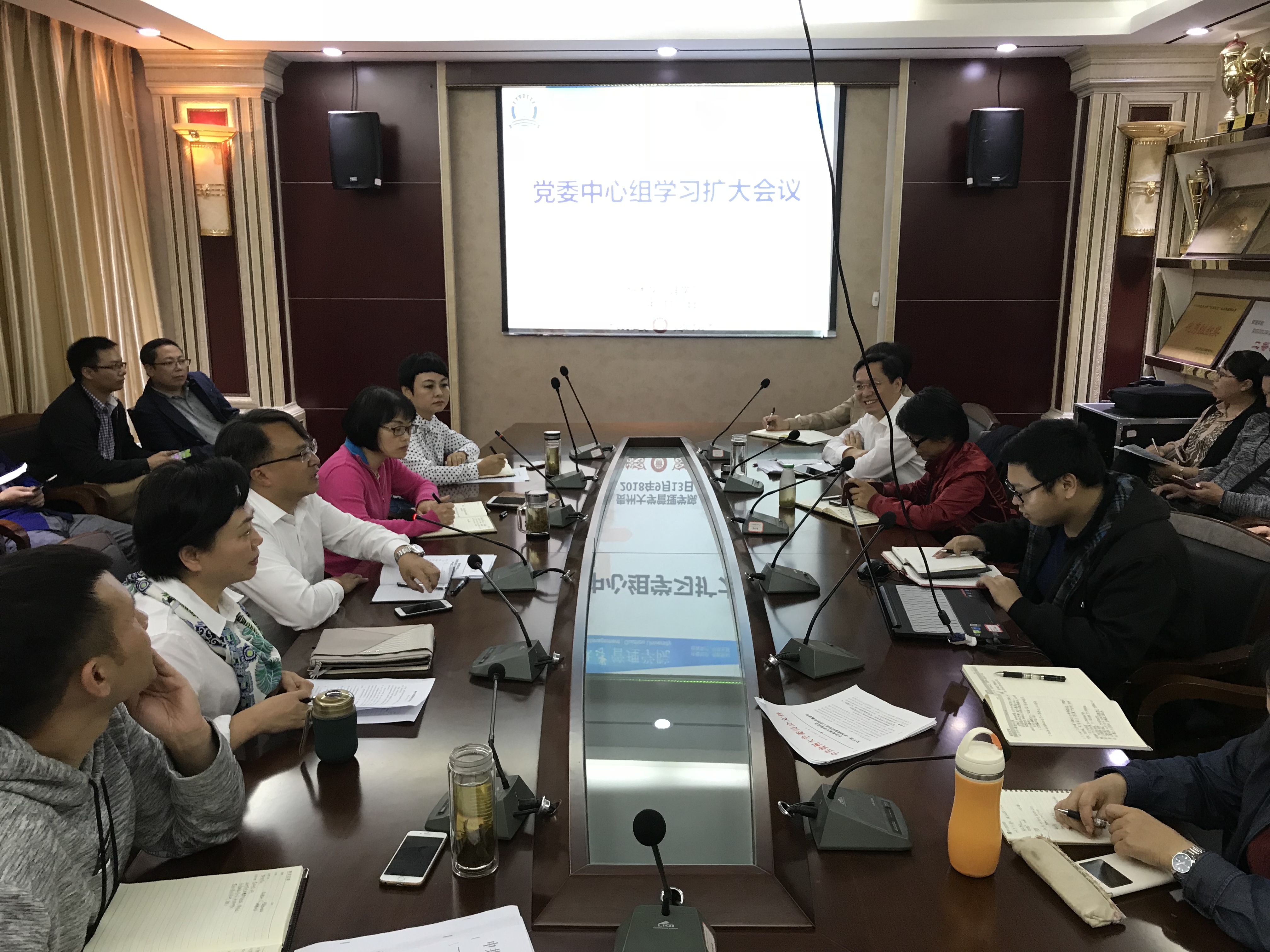 2018年9月13日下午14:30分,管理学院组织召开学院党委中心组(扩大)学习会议,学院党政领导班子、各科室(中心)负责人、系主任、系党支部书记等中层干部参加了学习,会议由李烨院长主持。