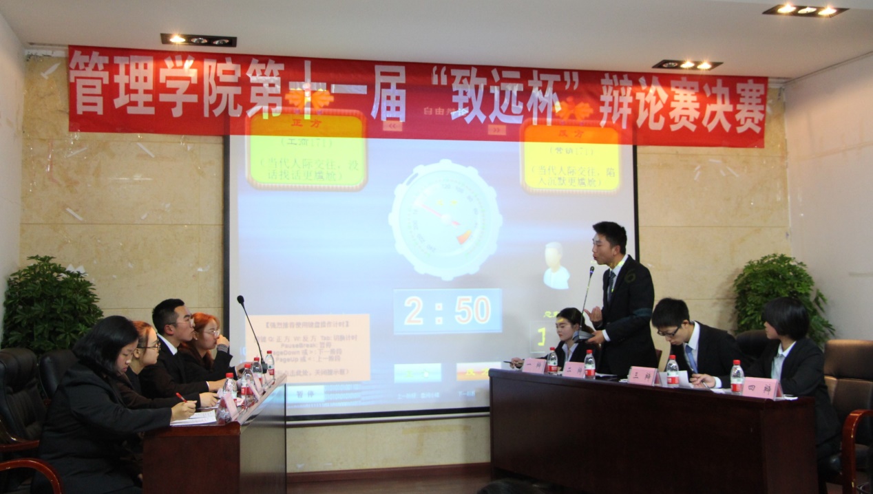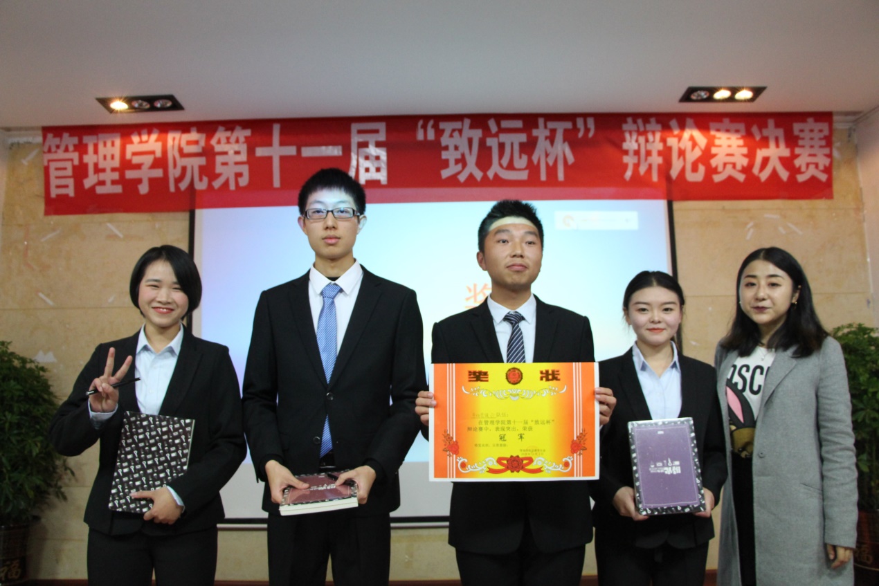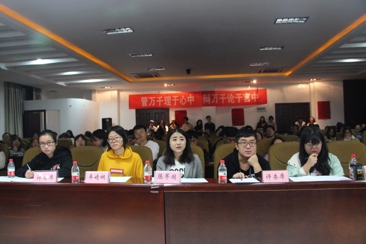 为让同学们拥有辨证的思维去树立正确的世界观、人生观、价值观,让同学们管万千理于心中,辩万千论于言中。11119时,乐鱼(中国)第十一届“致远杯”辩论赛在管理学院三楼报告厅举行。本次比赛由管理学院团委负责人陈芊羽老师、团委学生会秘书长车婧娴老师、贵州大学校辩论队队长王梓晨、校辩论队优秀辩手王琼以及校辩论队教练杨樑棁担任评委;电气工程学院辩论队、法学院辩论队、哲学院辩论队、酿酒与食品工程学院辩论队、公共管理学院辩论队、药学院辩论队等院队代表以及管理学院1617级各班班级代表观看本次比赛。管理学院团委学生会学术部刘克一主持本次比赛。