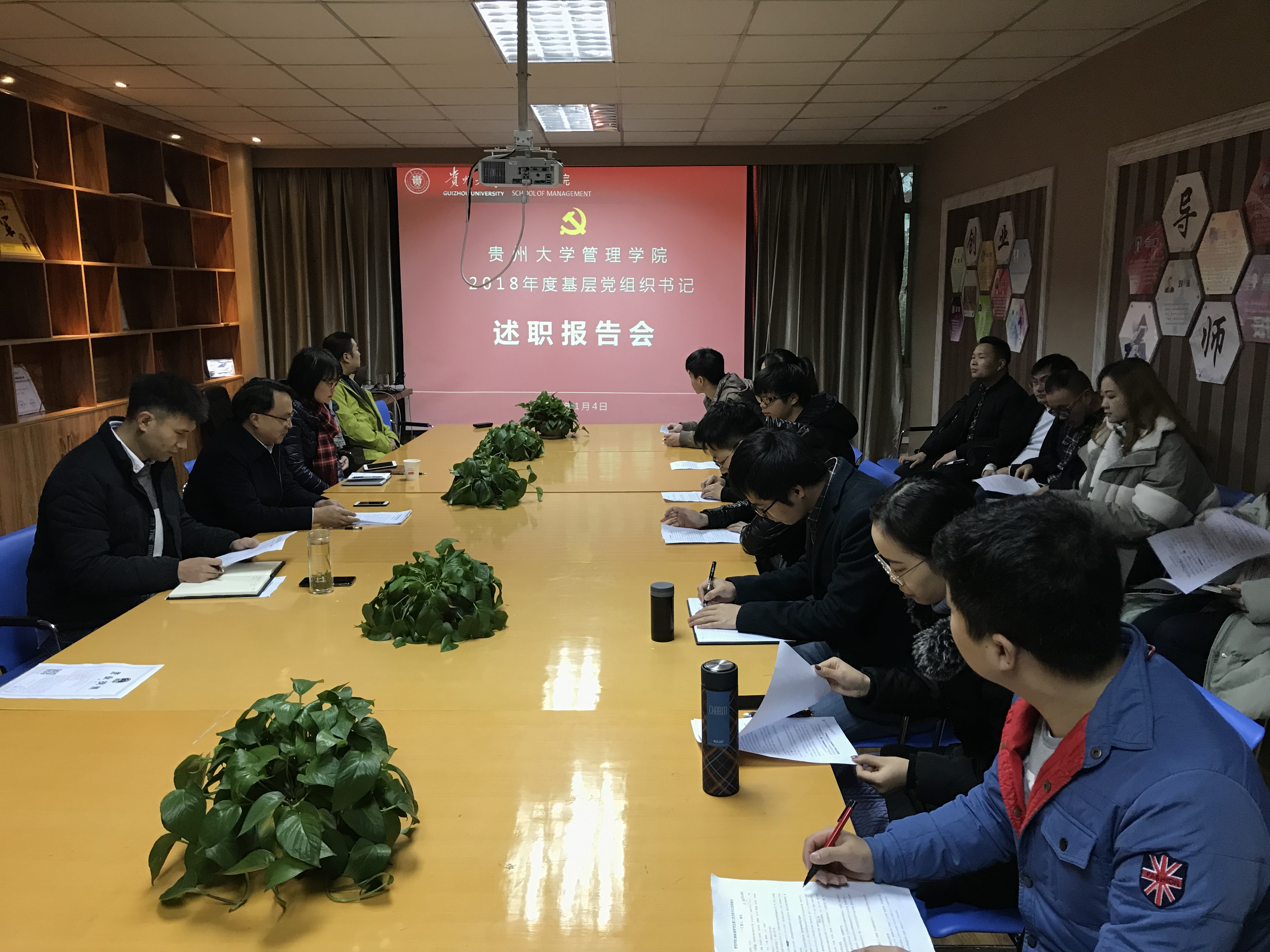 201914日上午900管理学院致远楼2楼创客空间举行2018度基层党组织书记述职报告会,学院党委委员、各党总支书记、党支部书记20余人参加了报告会,会议由院党委副书记张亚军同志主持
