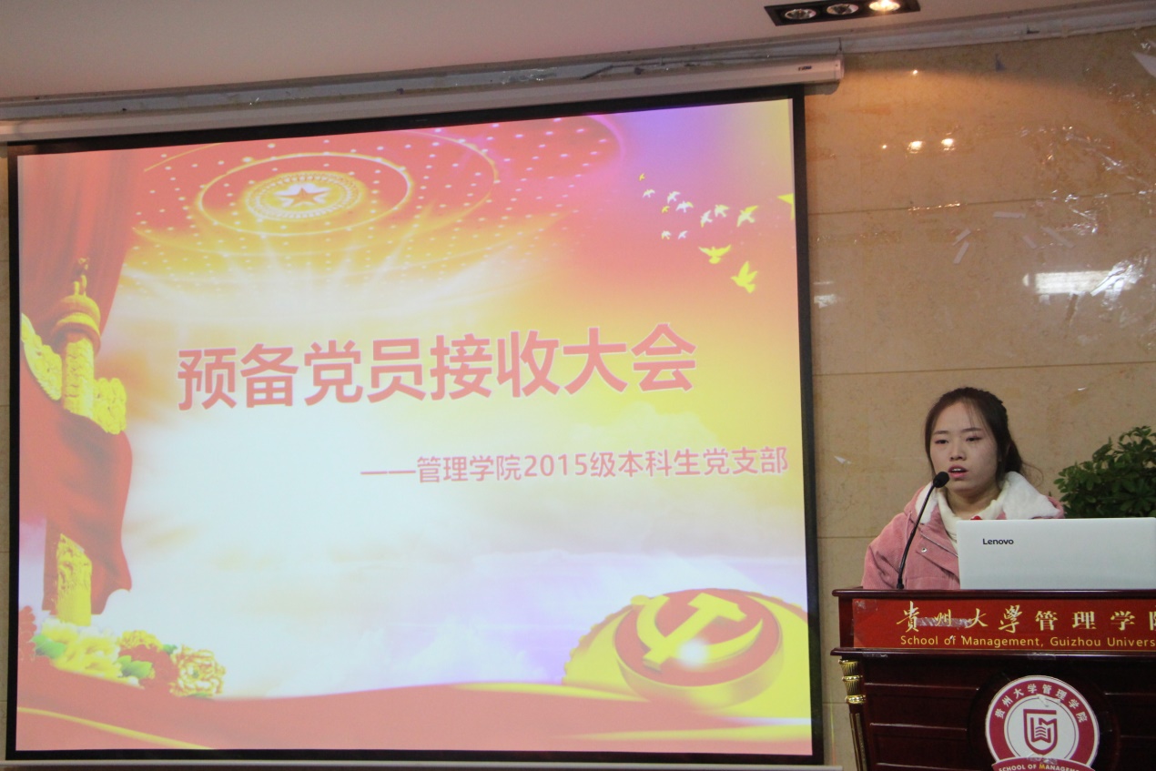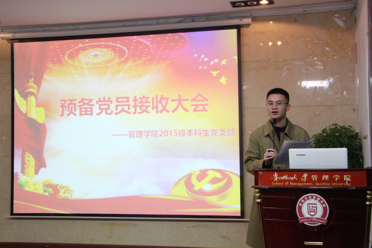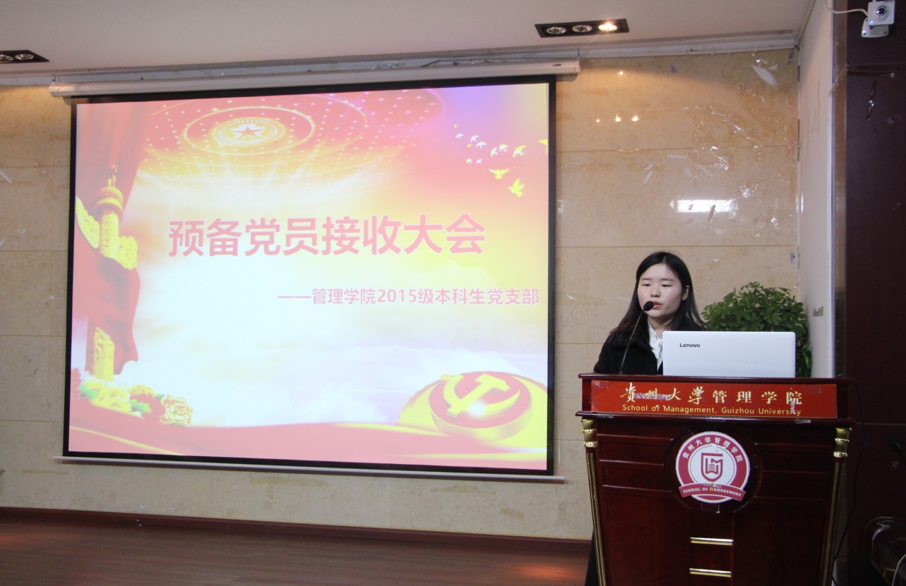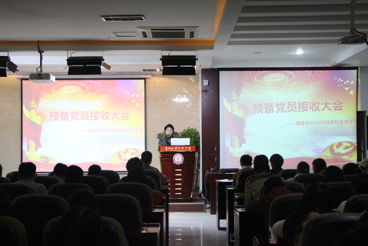 2018年11月28日晚7点,由乐鱼(中国)本科生党支部召开的讨论接收预备党员及预备党员转正会议,在管理学院三楼报告厅召开。管理学院2015级党支部书记陈芊羽老师出席此次大会、管理学院2015年级正式党员、预备党员及2016级发展对象参加本次大会。本次大会由党支部龙云青同志主持。
