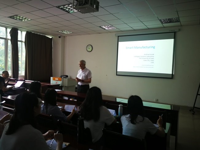 Andrew Kusiak教授首先围绕“Big Date 和Smart Manufacturing”的主题,从智能制造的起源、发展趋势、智能制造下企业的配置等管理问题以及如何对智能制造进行过程建模等内容进行详细地分析与讲解。然后,结合时下的大数据科学的背景,向同学们介绍了与智能制造中的管理以及管理工程相关的模型与应用,拓宽了大家对管理科学领域的视野,为大家今后的研究方向和内容提供了新思路。