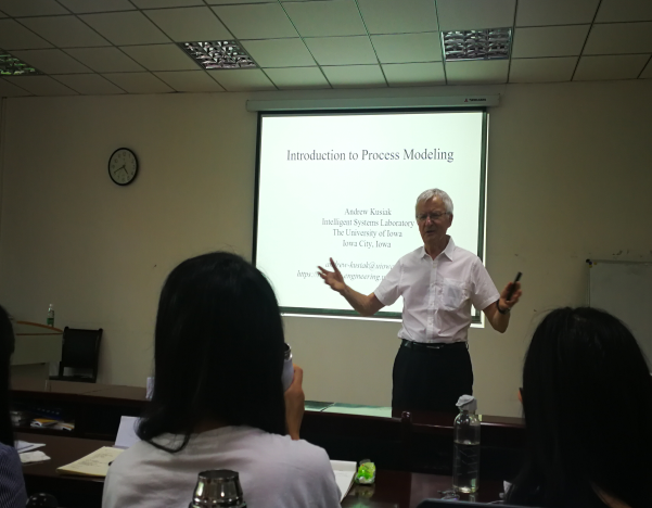 随后,Andrew Kusiak教授和同学们沟通交流后,为大家讲授了在解决实际问题中建立流程模型的内容,以更换轮胎的实际案例,让同学们先自己思考,再生动形象地描述了如何进行模型的应用,使同学们深刻理解了流程模型的构建。
