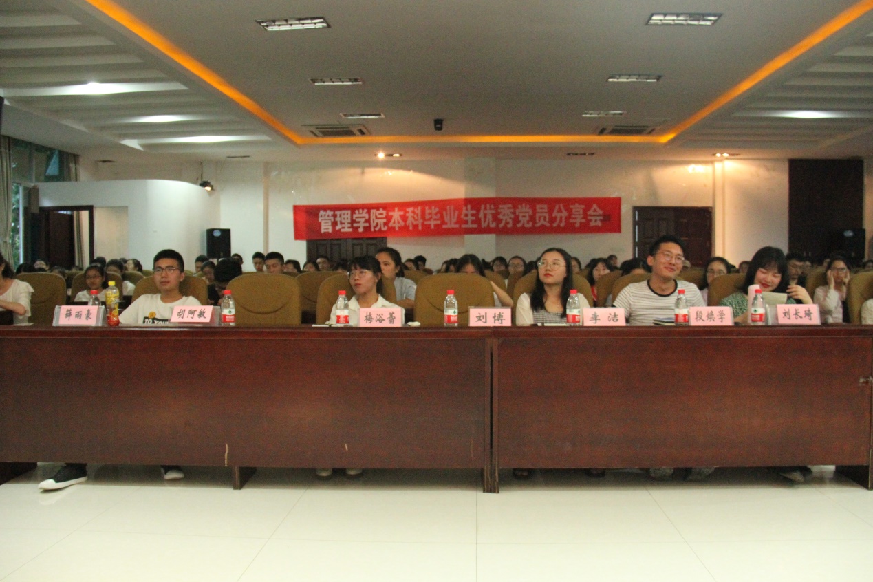 为了加强乐鱼手机网页版登录入口学风建设,帮助同学们坚定自己的目标和理想,让优秀的学长学姐的宝贵经验造福更多的学子,让同学们汲取更多关于入党、考研、保研、就业的经验,解除他们的困惑,从而使他们可以更好地为自己的将来准备,提前做好学习和就业规划。6月14日晚7点,乐鱼(中国)在学院三楼报告厅举办了“乐鱼(中国)2019届优秀毕业生分享会”。本次分享会特邀了乐鱼手机网页版登录入口获得了“保研”资格的财管151班薛雨豪、工程151班梅浴蕾、营销151班胡阿敏、工业151班刘博、人资151班段焕学、工商151班刘长琦,成功“考公”的会计151班李杰和两位特邀考研生工业151班任旖旎和杨淑贤等优秀党员毕业生代表出席, 2016及2017级管理学院部分学生参与本次分享会。