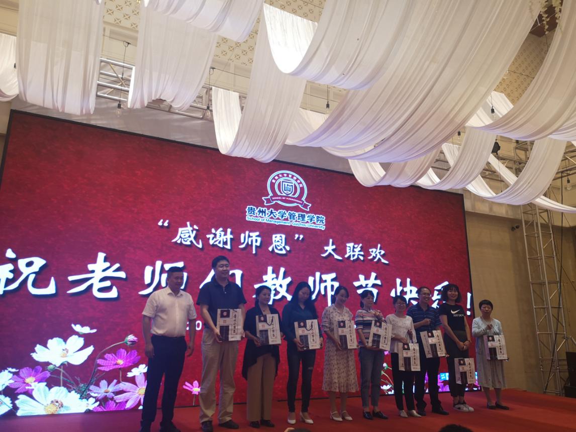 本次活动举办正值第八届酒博会开展之时,贵大管理学院院领导及校友一行参观了牟池酒业展馆。大联欢活动现场,贵州大学校友总会老师、管理学院在读学生分别带来了舞蹈、及独唱等表演项目,以答谢师恩。活动现场还设置了抽奖环节,全体管理学院教师可参与抽奖,获奖者可得到牟池酒业提供的礼品一份,活动现场气氛高涨,一片欢声笑语。
