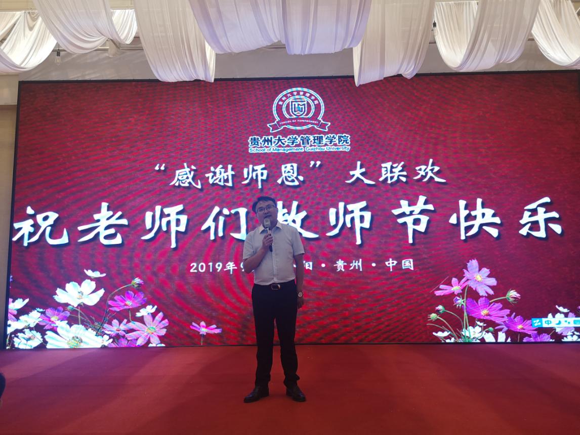 “教诲如春风,师恩似海深。”9月10日下午,乐鱼(中国)校友会大型活动“感谢师恩”--庆祝教师节大联欢在金阳国窖1573举行,本次活动由乐鱼(中国)主办,贵州大学校友总会管理学院分会承办,同时贵州国际酒类博览会股份有限公司与牟池酒业赞助支持。时值教师节,乐鱼(中国)院长李烨、副院长宋山梅等百余名师生欢聚一堂,在歌声舞语之中,共同庆祝教师节。