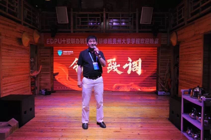 知识盛宴后,贵州大学EDP中心为学员们准备了丰盛的欢迎晚宴。张勇主任发表欢迎词,同时代表中国EDP教育联盟和贵州大学祝愿本次学程圆满成功,希望大家能在贵阳展开一段愉快的学习之旅,秉承中国EDP教育联盟“求知、悟道、修身、结缘”的精神,创新思维,学有所得,实现自我革新与蜕变。