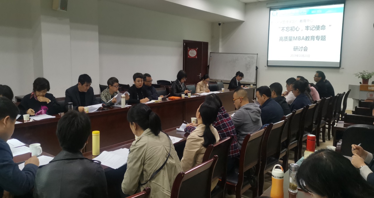 2019年10月23日,贵大管院MBA教育中心在201教室举行“不忘初心,牢记使命”高质量MBA教育专题研讨会。管理学院院长李烨教授、副院长王婷教授、副院长周莉莉教授出席了会议,MBA教育中心主任项凯标副教授、副主任何跃勇及中心任课教师共30余人参加了会议。本次会议由副院长周莉莉主持。