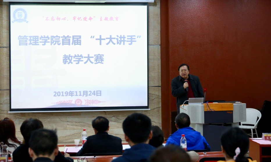 为将 “不忘初心 牢记使命”主题教育落实到学院实际工作中,紧扣立德树人的根本任务,紧紧围绕为党育人、为国育才的教育使命,优化教学过程,提高课堂教学效率,提高人才培养质量,乐鱼手机网页版登录入口于11月24日上午8:30-下午3:00在管理学院102教室成功举办首届“十大讲手”教学大赛。
