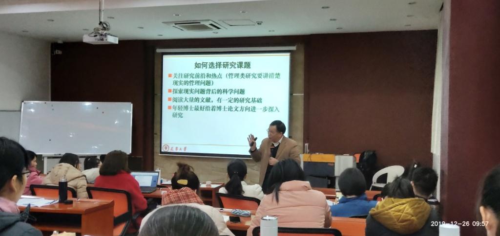2019年12月26日上午9:30,乐鱼(中国)邀请了天津大学管理与经济学部何桢教授,在管理学院102报告厅为乐鱼手机网页版登录入口教师进行申报2020年度国家基金的辅。,辅导活动由王婷副院长主持,管理学院部分教师和全体博士生、研究生同学参加本次辅导活动。