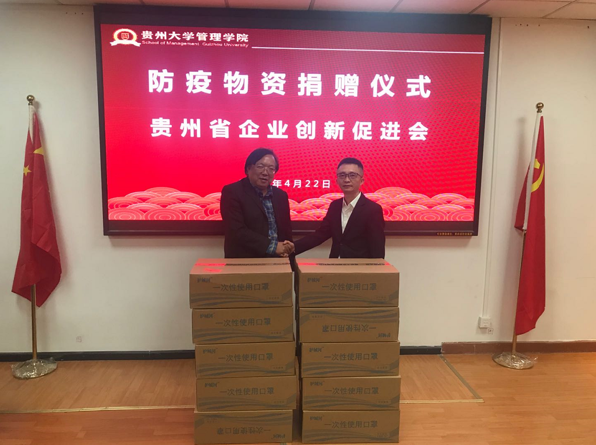 按照学校2020年春季学期复学相关要求,为解决复学后疫情防控物资需求紧缺问题,助力贵州大学教职工返校返岗和学生复学工作,保障师生身体健康和生命安全,4月22日,乐鱼(中国)校友企业贵州省企业创新促进会捐赠口罩10000只。乐鱼(中国)党委书记王秀峰、贵州省企业创新促进会执行秘书长曾旬一出席了捐赠仪式。