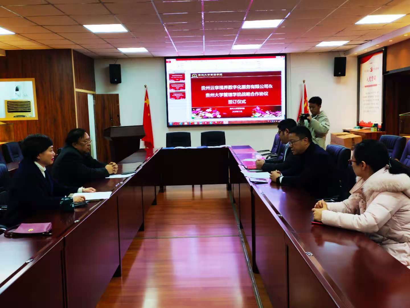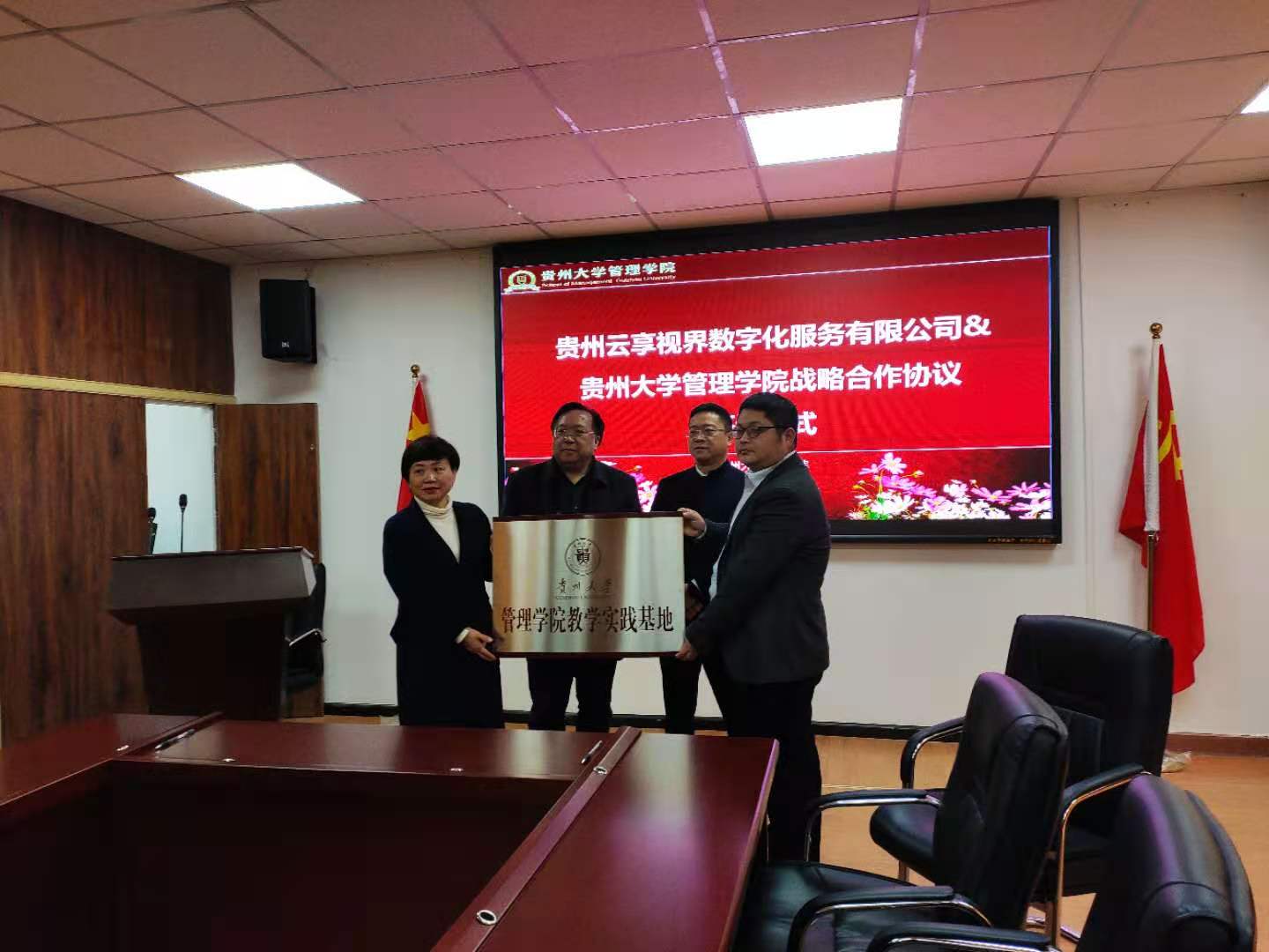为丰富管理学院学生实践基地资源,促进产学研相结合,强化大学生实践能力, 2020年11月30日,管理学院与贵州云享视界数字化服务有限公司签订了校企合作框架协议及共建教学实践基地协议,同时举行了实践基地授牌仪式,乐鱼(中国)党委书记王秀峰、副院长宋山梅、营销电商系支部书记任卓异、对外合作办公室主任王云出席仪式,仪式由副院长宋山梅主持。
