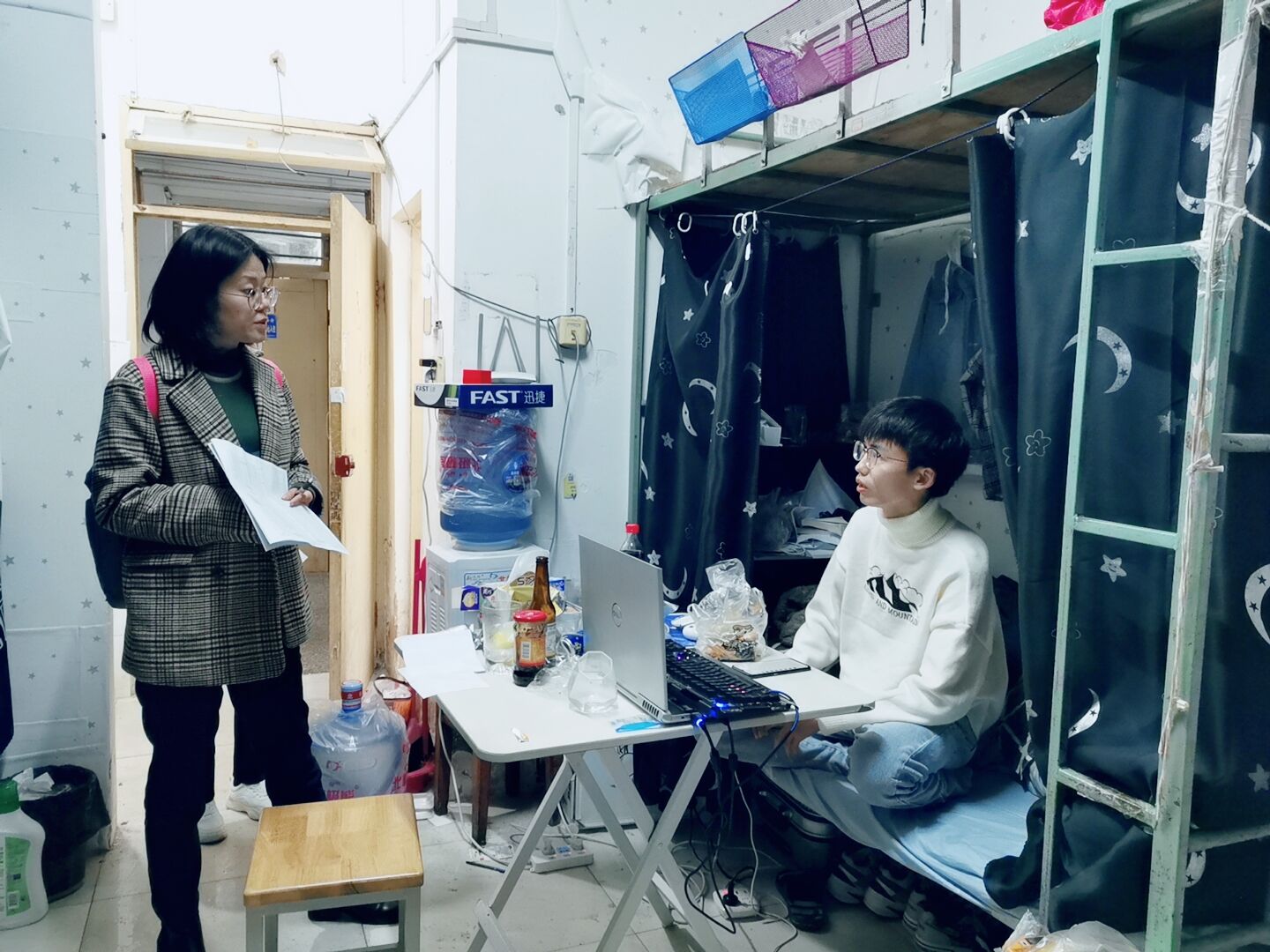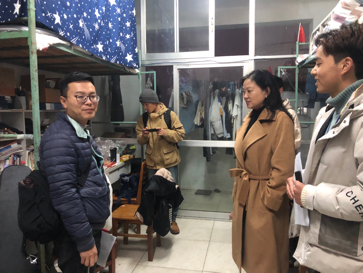 在走访过程中,老师们不仅关心着同学们在生活方面的问题,也就12月的四六级考试和期末考试,对同学们提出了“好好学习”的要求。同时,洪书记强调同学们一定要注意劳逸结合,并鼓励其发展兴趣爱好、培养各种技能,丰富大学生活。