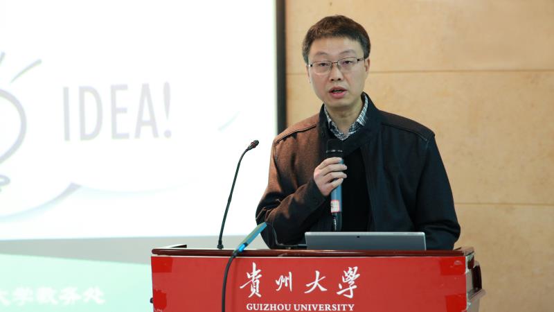 比赛伊始,贵州大学教务处处长向嵩教授为本次比赛发言致辞,向嵩处长指出“三创赛”是深化高等教育教学改革,培养学生创新精神和实践能力的重要途径,是激发大学生兴趣与潜能,培养大学生创新意识、创新思维、创业能力以及团队协同实战精神的重要载体。