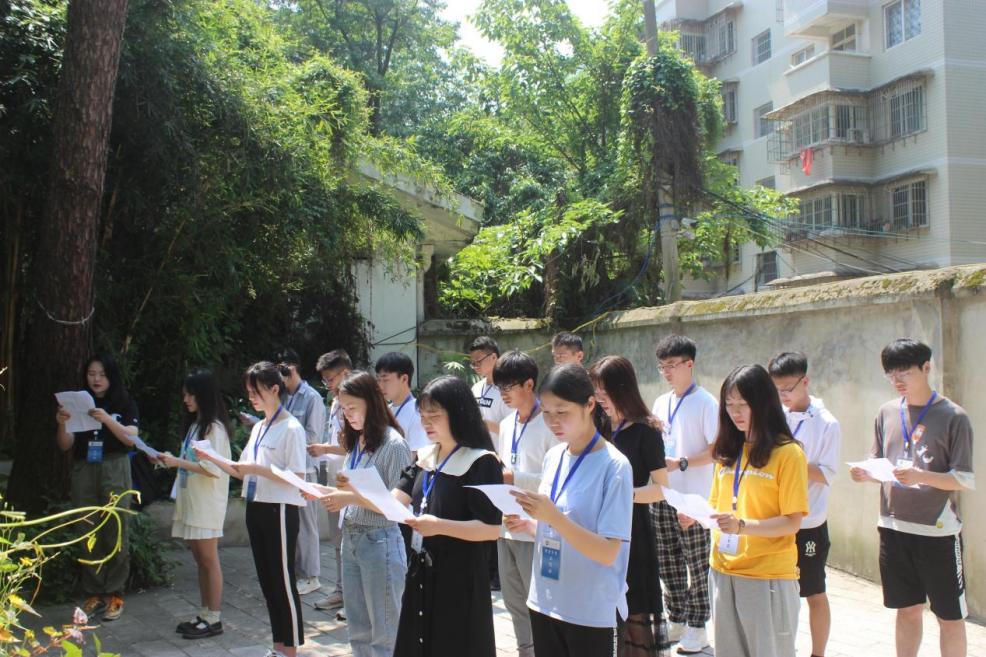 “烽烟滚滚唱英雄,四面青山侧耳听。”群山静默,群人肃穆,在主持人韩芷若同学的带领下集体朗诵了《英雄赞歌》,敬献给那群在历史中熠熠生辉的英雄儿女、敬献给那些在时代中保持血性和风骨的人民子弟兵、敬献给一切在过往的风尘中永葆青春的红色精神。