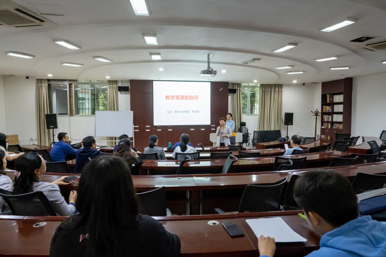 为使教师们了解先进教育思想和教学理念,掌握教学规范和教学技巧,灵活应用教学手段,形成卓越教学的价值追求和自觉行动,6月2日下午,2021年管理学院教师教学技能培训会于致远楼101教室成功举行。原贵州大学发展规划处处长、管理学院副院长、现贵州大学青年教师教学竞赛训练营教练组组长林岚涛教授受邀为学院老师们作教师教学技能培训。培训由管理学院副院长宋山梅主持。