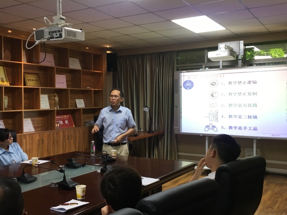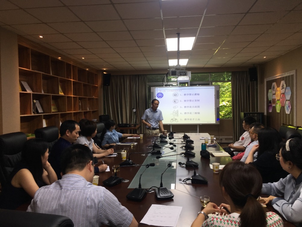 培训围绕大学教学是什么、教学的前提、了解学生什么状态下学得最好、教师要传递正能量、塑造自己的教学风格等部分展开,为参训教师作了富有针对性的建议。王教授首先指出教学育人的初心是要育人,要践行人民教师职业操守与道德,确保教育教学质量的同时做到为学生负责、为课堂负责。在教学风格方面,他认为大学教学禁止灌输、禁止复制,教学工作是万花筒、三棱镜、手工品。大学教学工作应该是个性化,要体现任课老师的自身特点并塑造自己的教学风格,而不能千篇一律。在职业操守方面,他强调爱学生是优质教育的前提。老师在课堂授课中老师要传递正能量,对学生要充满真诚的爱,努力修炼成为学生喜欢的老师,让学生因你的存在而感到幸福、让学生因你的引导而改变。在教学技能方面,他介绍了有关备课、PPT制作和学生常见问题的识别和处理,帮助新教师掌握必要的教学工作方法,储备必要的工作技能。