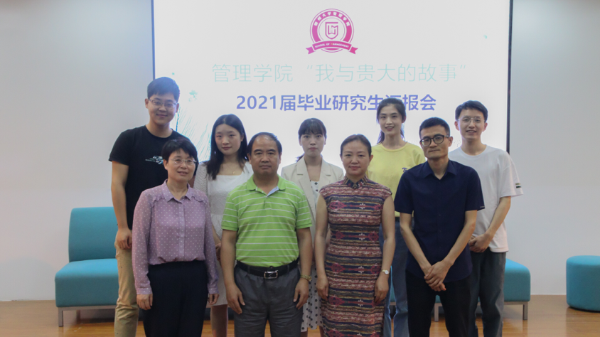 罗敏副院长作总结发言。他表示,2018级的毕业研究生们在思想上紧跟社会主义新时代步伐,做到了思想跟得上、靠得住、信得过、行得通,在科研学术、文化传承和社会服务等方面为学弟学妹们树立了榜样,为助推学校部省合建和“双一流建设”做出了新时代研究生的贡献。至此,管理学院“我与贵大的故事”2021届毕业研究生汇报会圆满落幕。