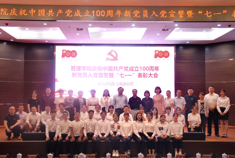 贵大新闻网讯6月30日中午,管理学院庆祝中国共产党成立100周年新党员入党宣誓暨“七·一”表彰大会在西校区贤正楼报告厅举行。管理学院党委书记王秀峰出席会议,学院副书记洪影秋、副院长罗敏、王婷、周莉莉、宋山梅,各科室负责人、教工党员、学生党员代表及入党积极分子参加大会。
