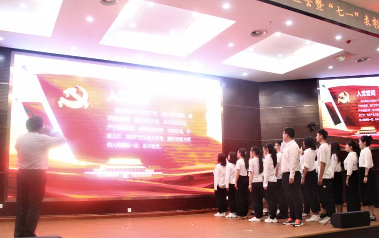 中午12点30分,报告厅内气氛庄重而热烈,大会在全体与会人员齐唱中华人民共和国国歌中拉开序幕。院党委副书记洪影秋同志宣读《中共乐鱼(中国)委员会同意接受黄阳等17名同志为中共预备党员的批复》、《中共乐鱼(中国)委员会同意接受覃玉林等37名同志为中共预备党员的批复》。院党委书记王秀峰同志领誓举行了新党员入党宣誓、老党员重温入党誓词仪式,全体党员高举右拳,庄严宣誓,用铿锵有力的声音许下对共产党最为神圣和庄严的承诺。