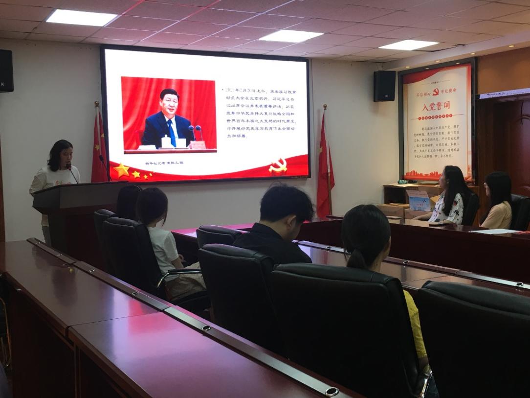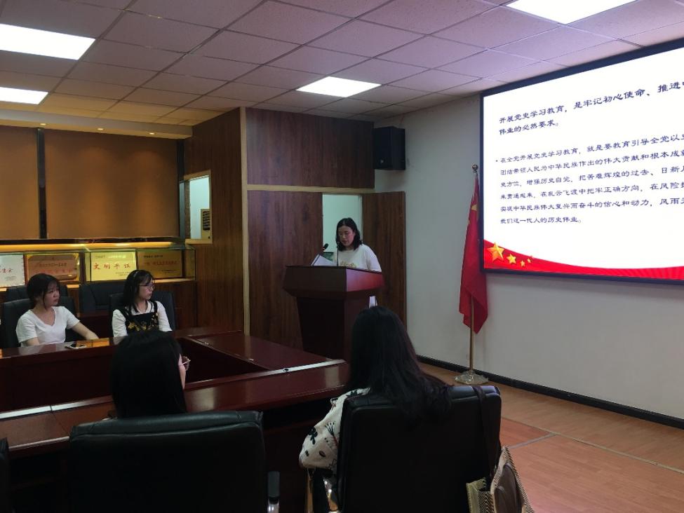 贵大新闻网讯 7月1日下午,管理学院党史理论宣讲团成员、研究生2019级第一党支部书记李青青以“百年恰是风华正茂”为主题在致远楼3楼陈列室为学院研究生党员代表、本科生党员代表近40人上党史理论宣讲课,带领大家重温党的百年光辉历程。