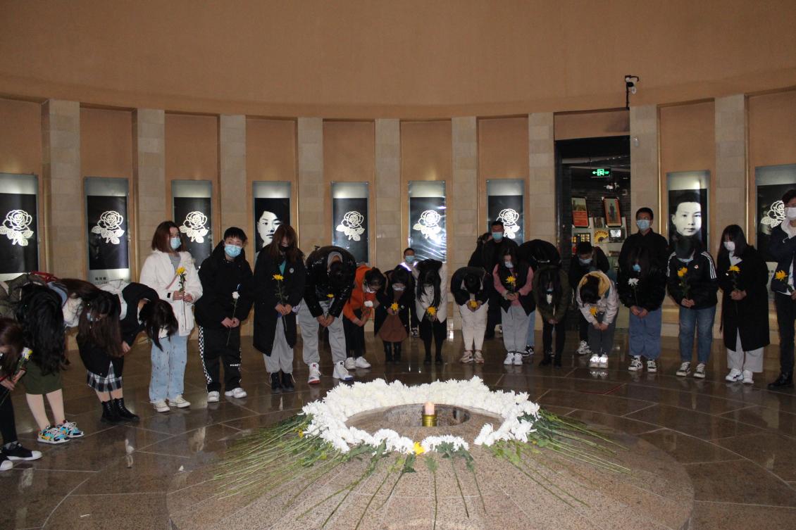 徐兰老师与学生代表一同向革命烈士敬献鲜花。全体成员向革命先烈们行九十度鞠躬礼,寄托对革命先烈的敬仰和追思。