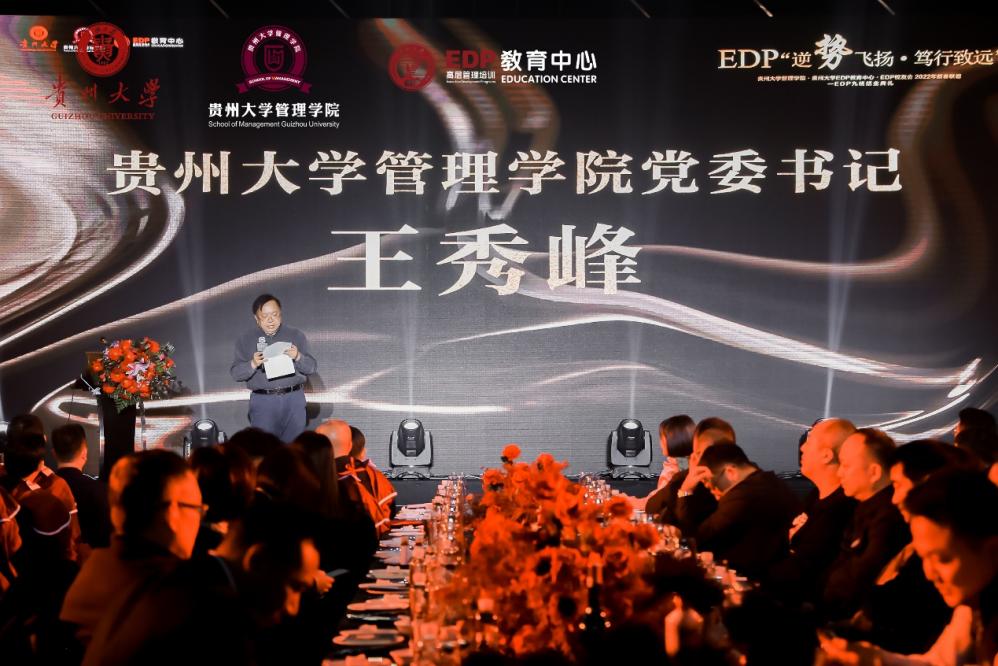 贵州大学EDP校友会会长牟道勇在发言中,代表EDP校友会对各位领导、嘉宾和各班同学代表的莅临表示衷心的感谢,也对全年的工作进程进行了工作总结。好风凭借力,扬帆正当时,作为EDP校友会会长,今后的每个工作,都将会乘风破浪,以高标准、高质量、高要求要做好组织建设;作为EDP九班的班长,结业正当时,未来,我们将信心满满走向新征程。
