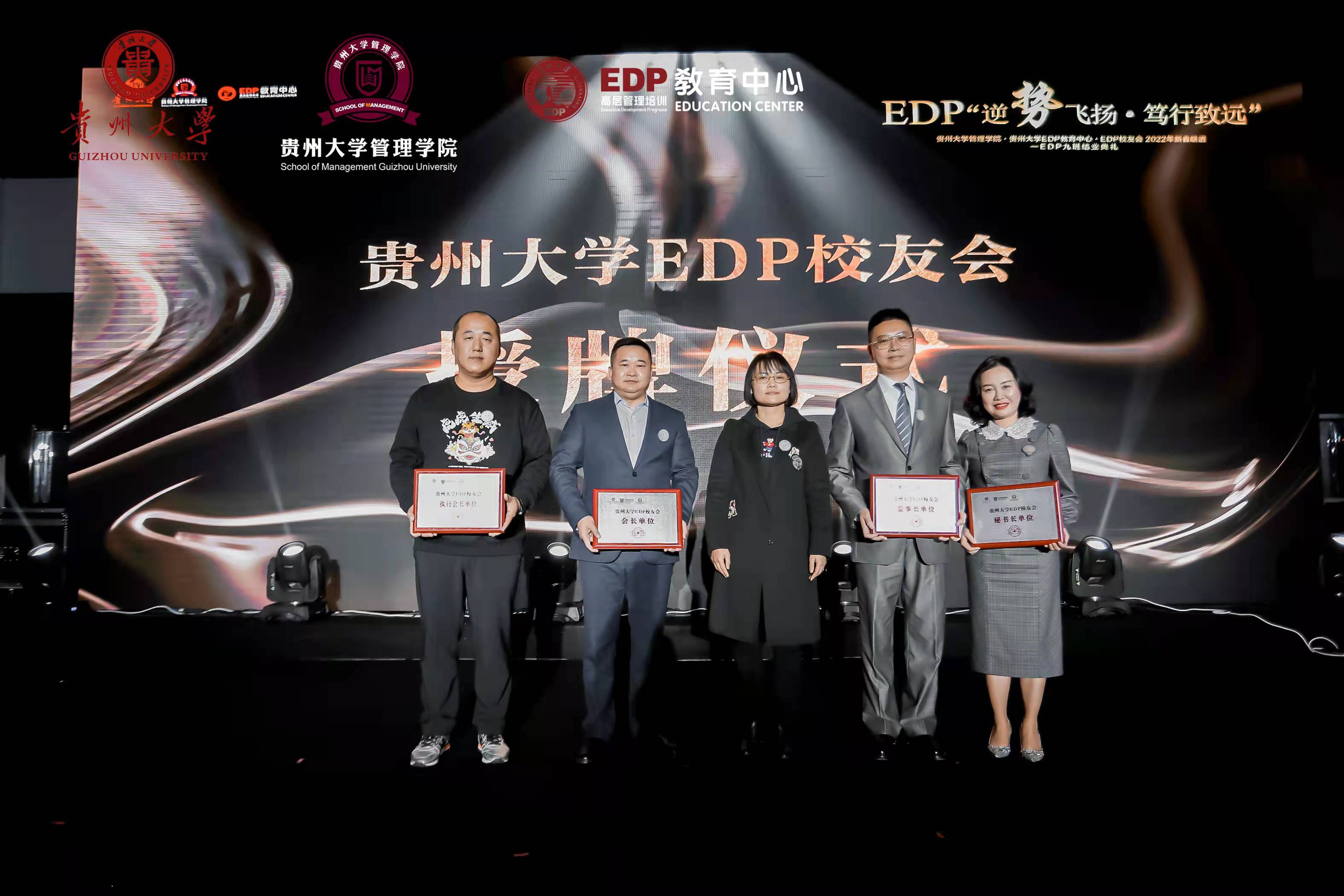 漫漫星河,凝聚光芒,宴会上还对贵州大学EDP校友会名誉会长单位、会长单位、执行会长单位、监事长单位、秘书长单位、副会长单位、执行秘书长单位、户外拓展部单位、读书会主席单位、财务总监单位、副秘书长单位、理事单位进行了授牌仪式。